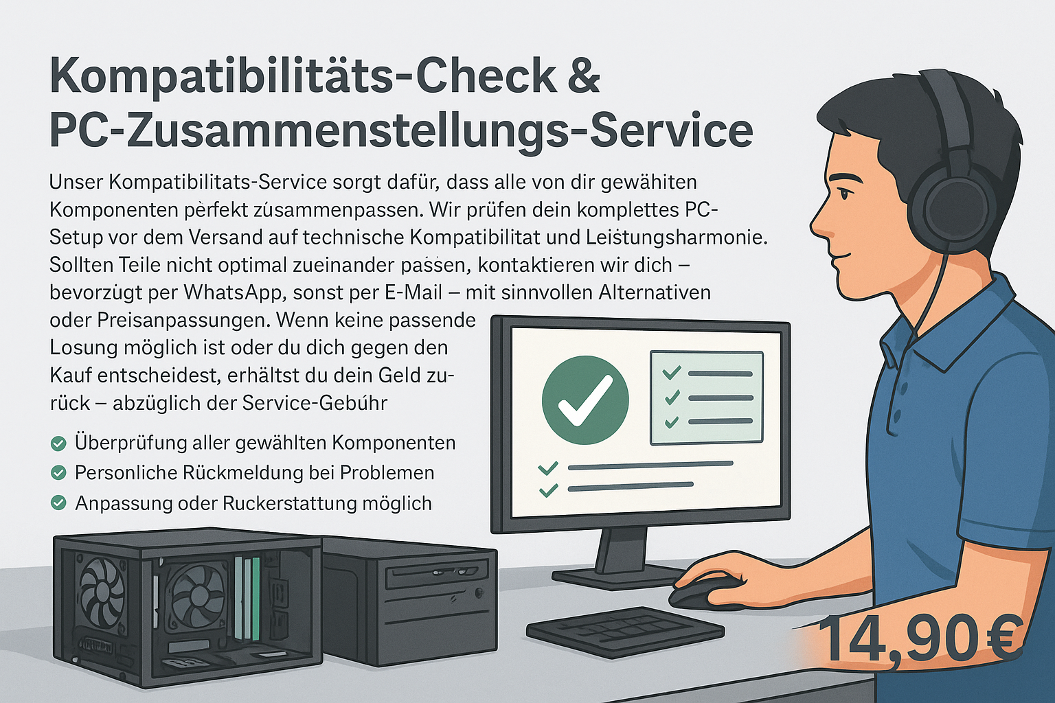 Wir prüfen dein komplettes PC-Setup vor dem Versand auf technische Kompatibilität und Leistungsharmonie.